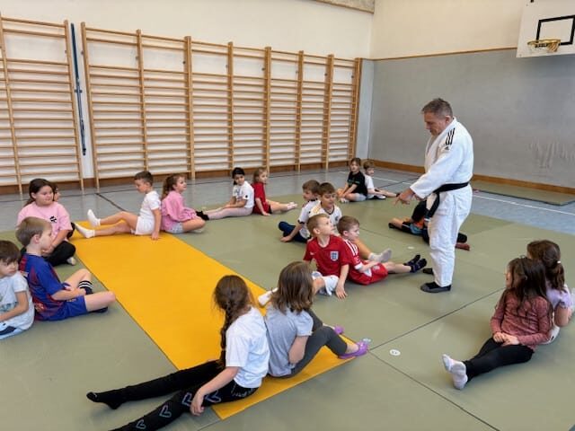 AufwĂ€rmen, spielerische Ăbungen zur Bewegung und Koordination, erste einfache Judo-Techniken (z. B.: Fallen, Gleichgewicht, kleine WĂŒrfe) und Regeln und Werte des Judo (Respekt, Fairness, Disziplin) standen in dieser Stunde am Programm.